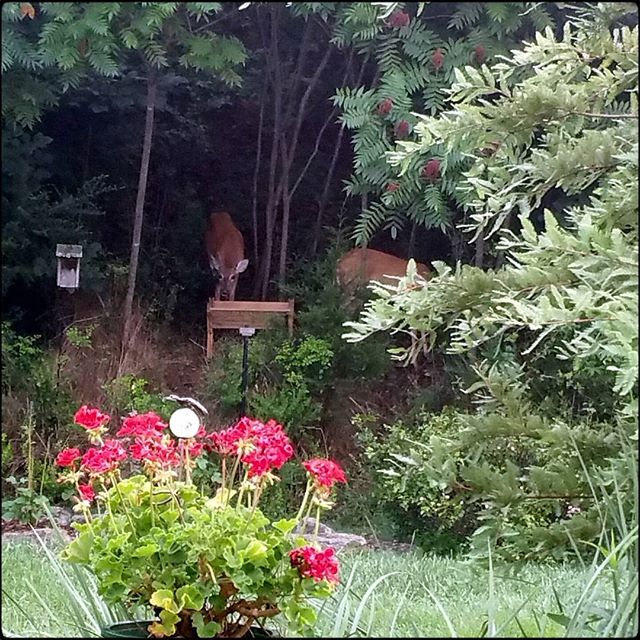 So far, the motion sensor sprinkler is working to keep the deer out of the garden. Samantha, Gidget, Bo, Brenda, and little Grace have learned that they’re welcome to eat the corn from the feeder but they’re staying away from my flowers.